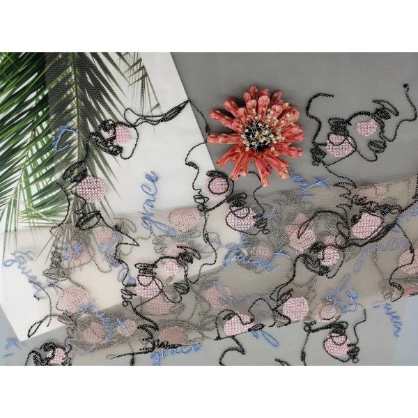 Multi Colored Embroidered Tulle Mesh Fabric With Letters Images |